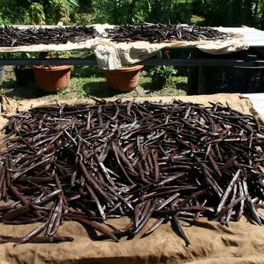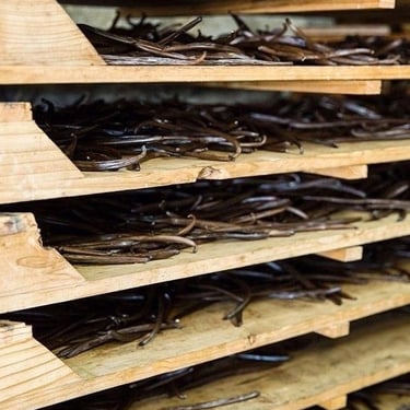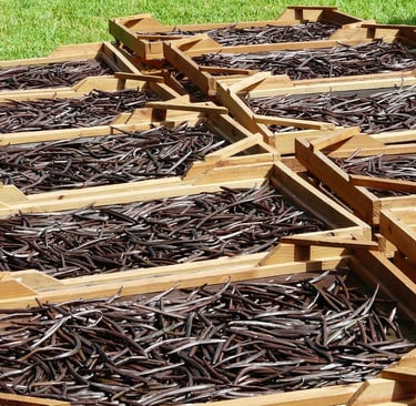 Scenes from our vanilla farms, harvesting, curing, and packaging processes.